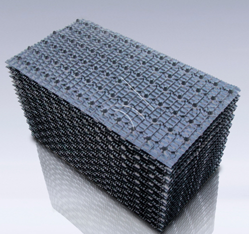 4、清除塔體。清除冷卻塔內(nèi)的塵土和廢棄物,在冷卻塔內(nèi)先后堆放填料,嚴(yán)禁踐踏和擠壓成型,確保每堆填料齊整,確保填料與塔角和塔周密不可分無縫拼接,及其難以堆放。CES間隔不超出2mm。冷卻塔填料部位修X復(fù)結(jié)構(gòu)加固。